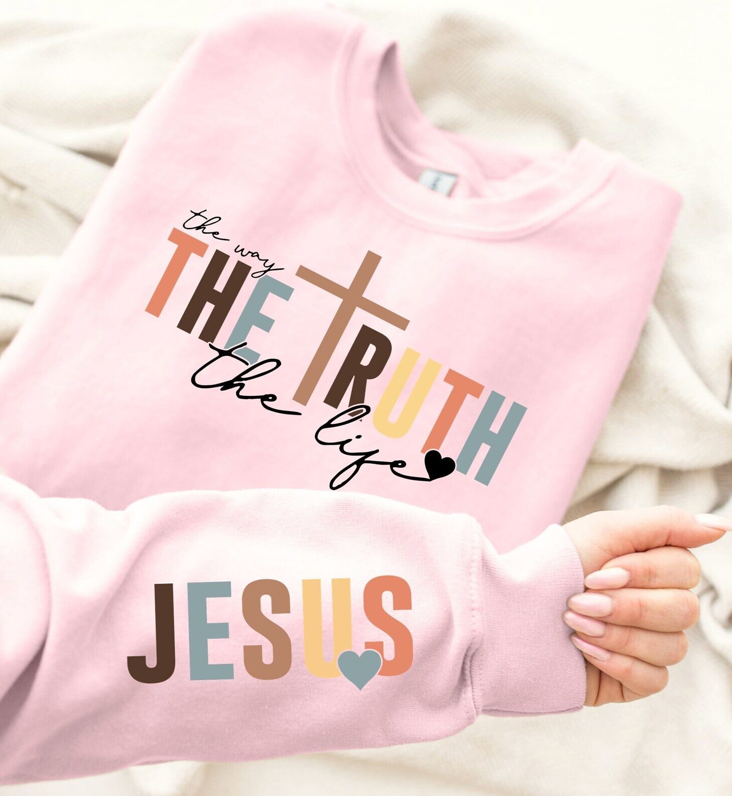 “the way, the truth, the life” and “JESUS” in colorful, modern print.
